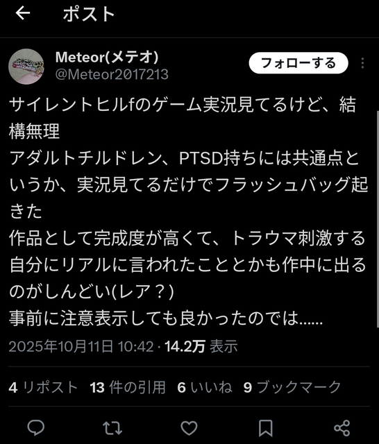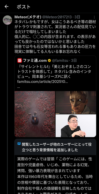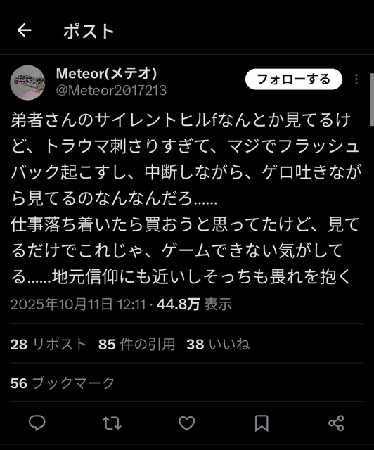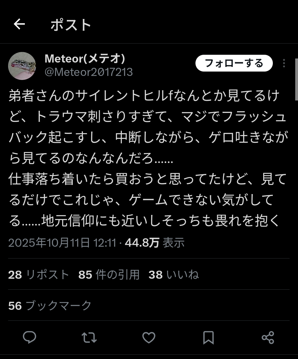 【悲報】女さん、サイレントヒルfの実況動画を視聴し、トラウマを刺激されてゲロを吐く