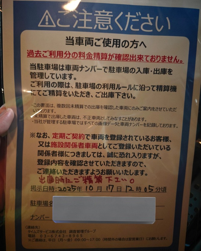 タイムズが管理してるんやが遊技した人はサービス券貰えるんやけど、毎回サービス券で精算してから8時間後くらいに仕事終わってから取りに来てたらこんなの貼られとったわ、わいが悪いんか?日付変わってから退勤やから当日限りのサービス券は退勤後は使えないんや