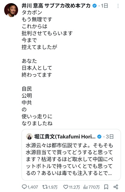 ホリエモン「中国人に水源買われても関係ないっしょw」→井川意高に絶交されてしまう