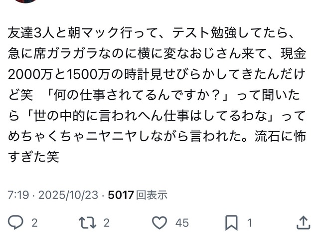 普通に「二千万あるんや」って言うてきたんちゃう?