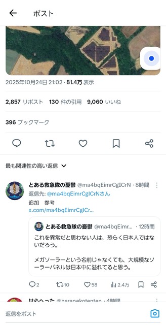 ここは村なのか、ソーラーパネル専用地なのか。 https://t.co/2cWpE8PDGS pic.twitter.com/QWz5wxyrv6— とある救急隊の憂鬱 (@ma4bqEimrCgICrN) October 24, 2025