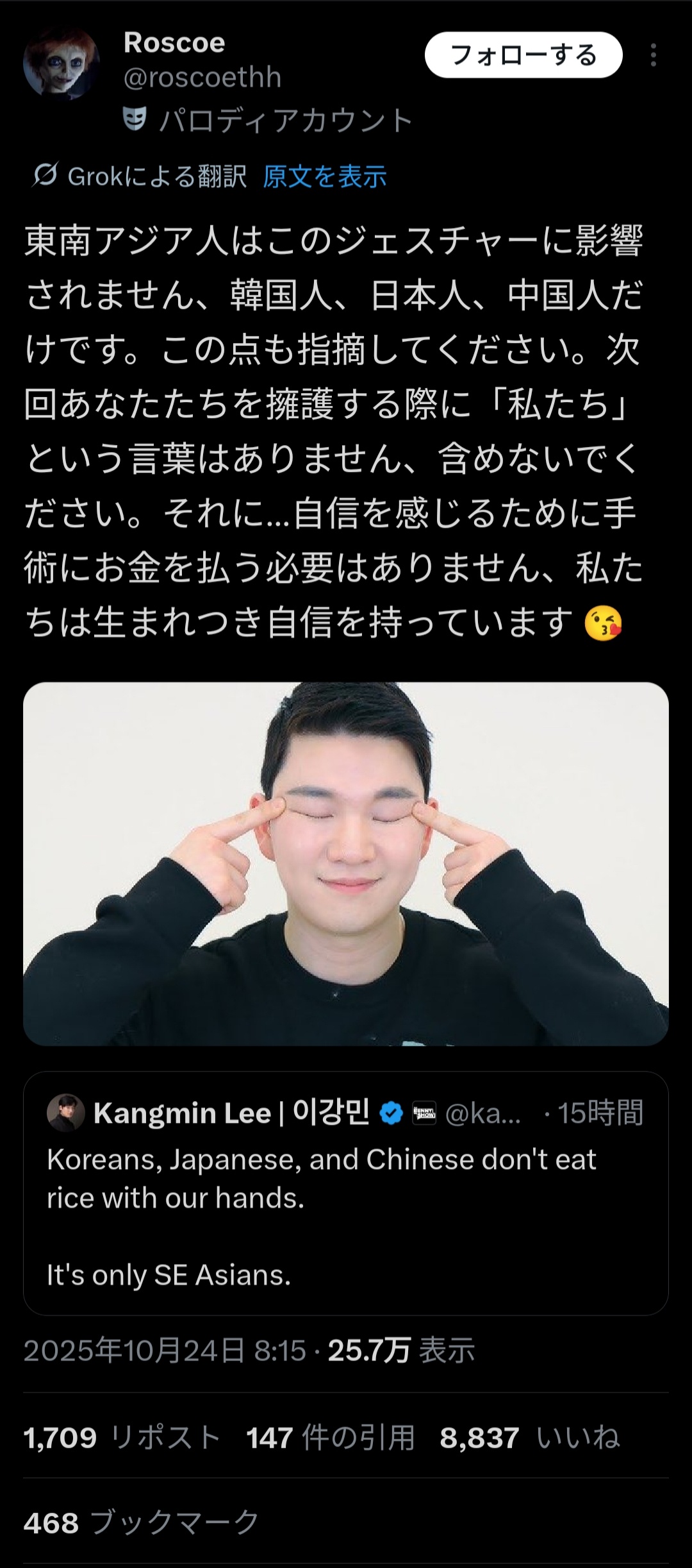 東南アジア人「東南アジア人は目が細くないし整形狂でもないので一緒にしないでほしいですね」と煽り返す