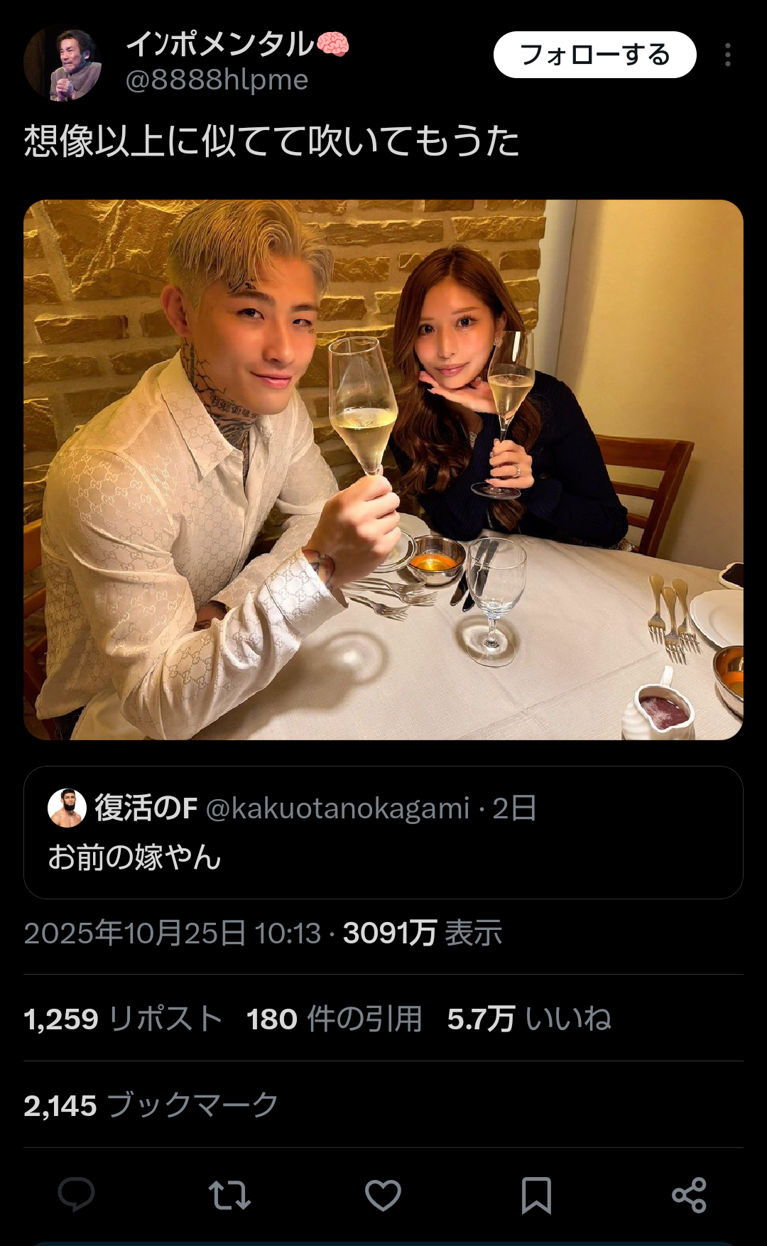 別に俺は彼のアンチじゃないけど、いつだったか白川陸人選手の奥さんを売女扱いしてたよな。やっぱこう言うのって返ってくるんだなー、しみじみ pic.twitter.com/OsLxuLoAoM— DryHeart@GKP (@DryHeart591112) October 25, 2025