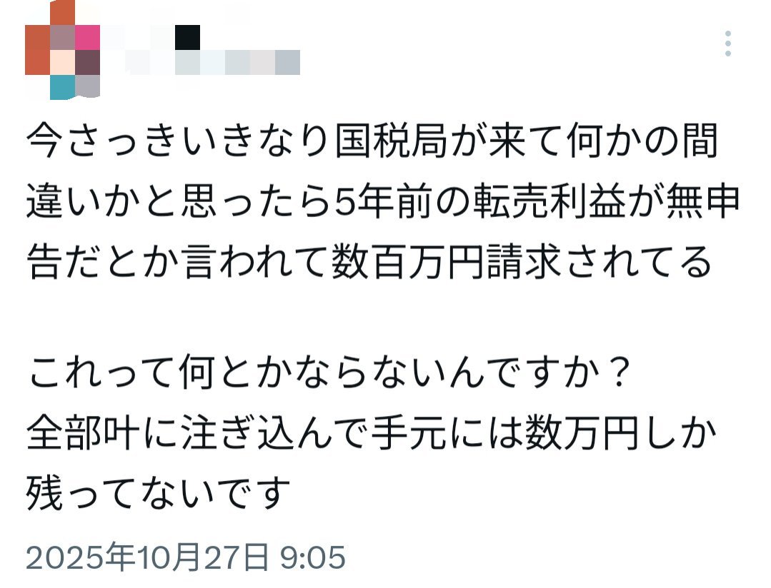 申告してなさそうな転売ヤー見つけたら片っ端から税務署にタレコミしてるって奴おったな