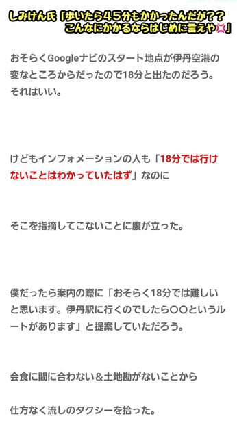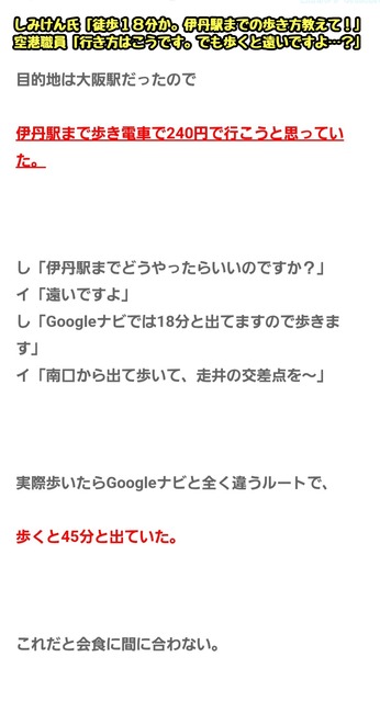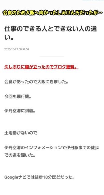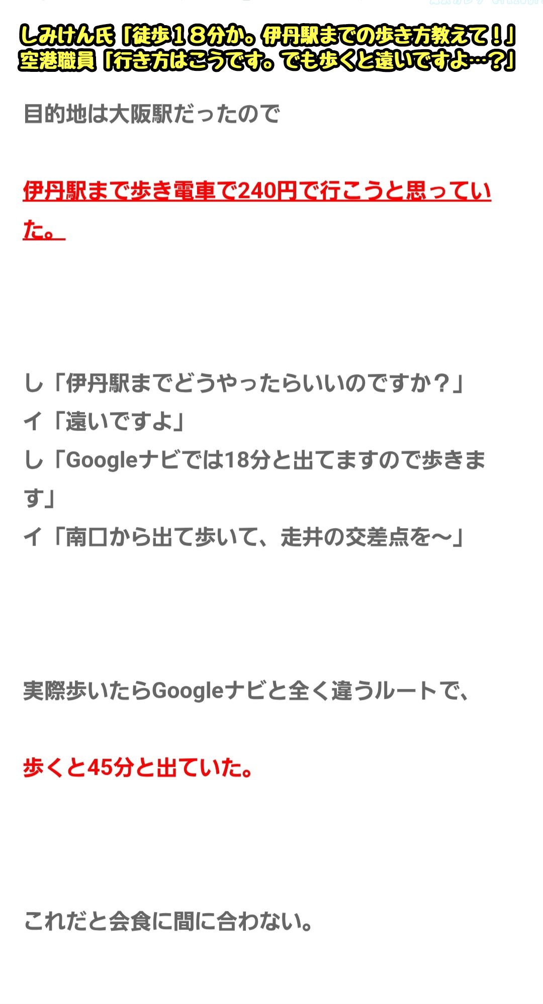 伊丹空港に到着したしみけん氏「伊丹空港から伊丹駅までは……(スマホポチー)お、徒歩18分か。歩こっと」