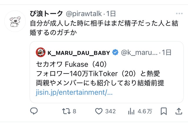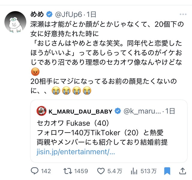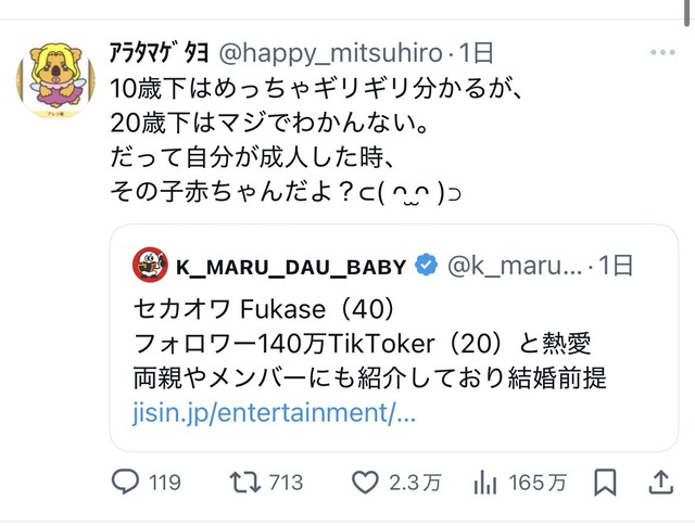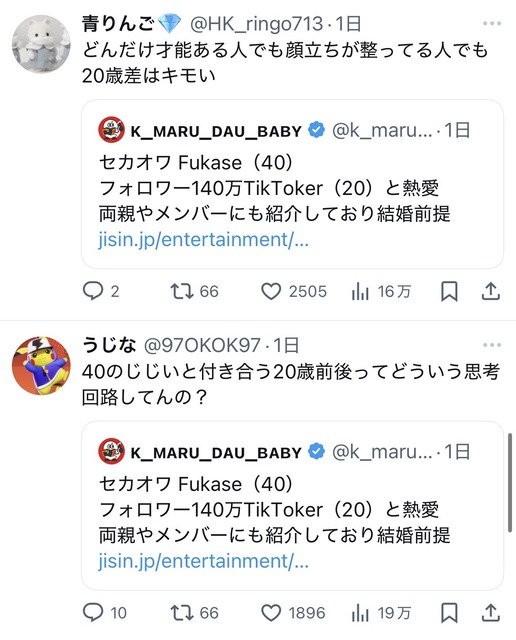 【悲報】x女さん、大合唱「40代男と20代女が熱愛してるのぉぉ」ギャオオオオオン 2025/10/31 キニ速 1:名無し :2025/10/28(火) 23:38:16.255ID:NOgkTBv2h 続きを読む Source: キニ速