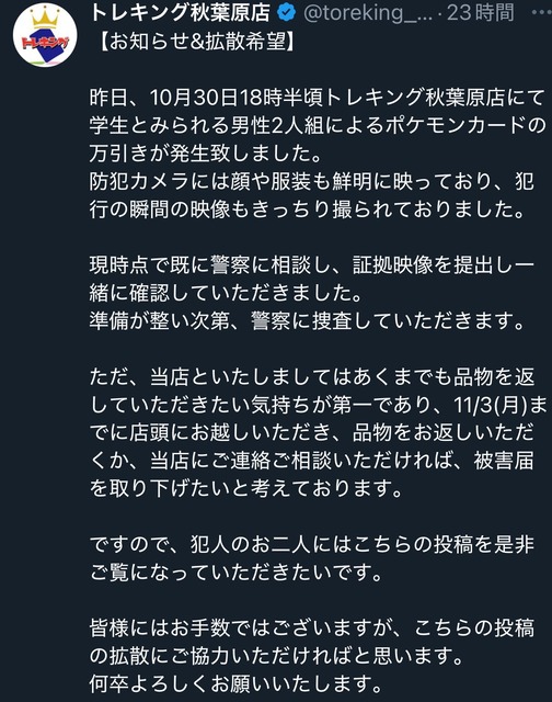 【悲報】カードショップ「万引きした学生、警察沙汰にしないから今すぐ自首して」→