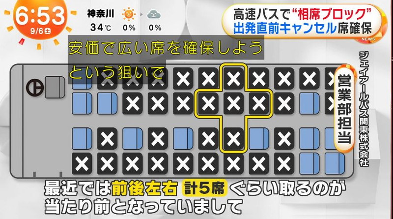 高速バスなどの隣の席も予約して直前でキャンセルする相席ブロック