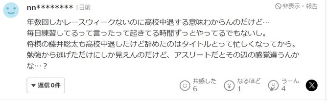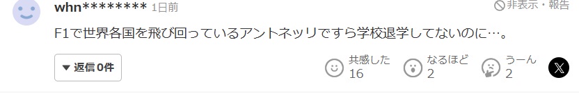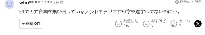 さいたま市出身の18歳で、レースに専念するためあえて通信制の高校に進学。それも煩わしいと退学するなど腹が据わっている。「僕はレースに人生をかけていますから」と言い切る、骨太のドライバーが誕生した。https://news.yahoo.co.jp/articles/d69beb165ed6c938c16dbd689253a274e0afd465/comments