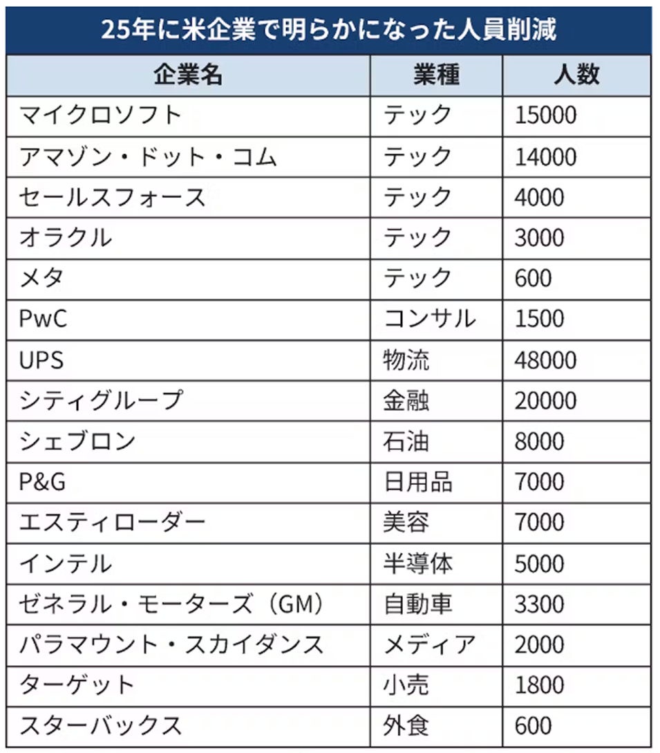 日本経済新聞【ニューヨーク=川上梓、シリコンバレー=中藤玲】米国企業のリストラが相次いでいる。民間統計によると、2025年1〜9月に企業が表明した人員削減数は前年同期比5割増の約95万人に拡大した。米景気や失業統計はまだ悪化傾向を示していないものの、大企業は人工知能(AI)による効率化を先取りする形で人員を削減し、「雇用なき成長」に向け動き出した。