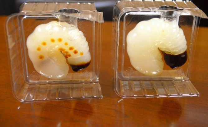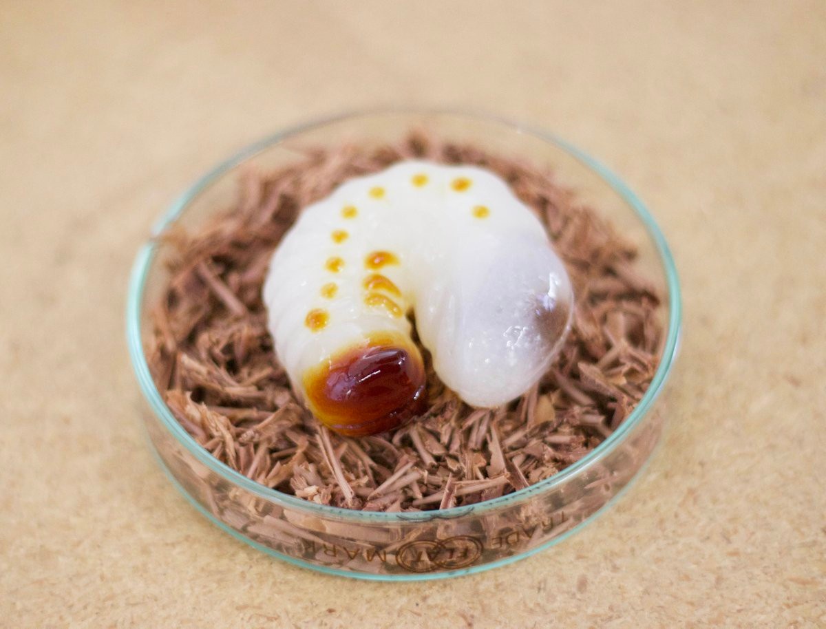 発案者は食品開発部企画課(当時)の長江無我さん(36)。22年夏、カブトムシ採集に行った際、小学生の頃に見たテレビ番組の記憶がよみがえった。異国の人々が芋虫を食べており「カブトムシの幼虫もおいしいのかも」と思った。