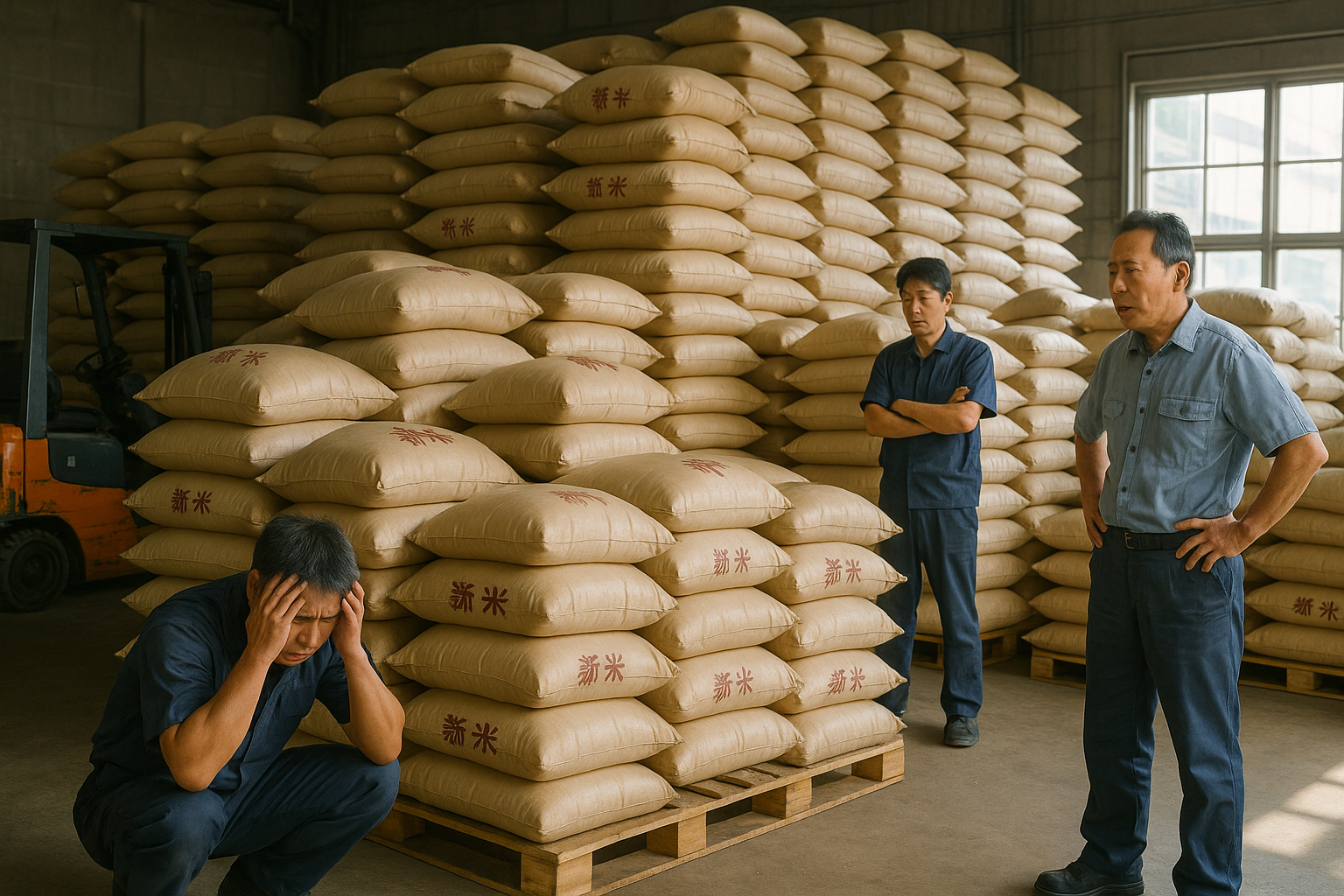 依然として高止まりが続いているスーパーのコメの価格ですが、卸業者では在庫がたぶつき値崩れへの警戒感が広がっています。
