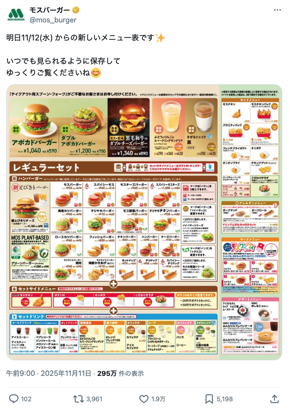 【悲報】モスバーガー、お前らの手の届かない場所へと飛び立つ