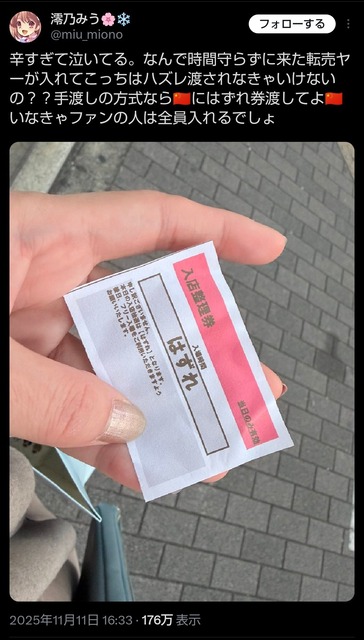 長時間並んでハズレ整理券を渡されたテニプリオタクがブチギレ