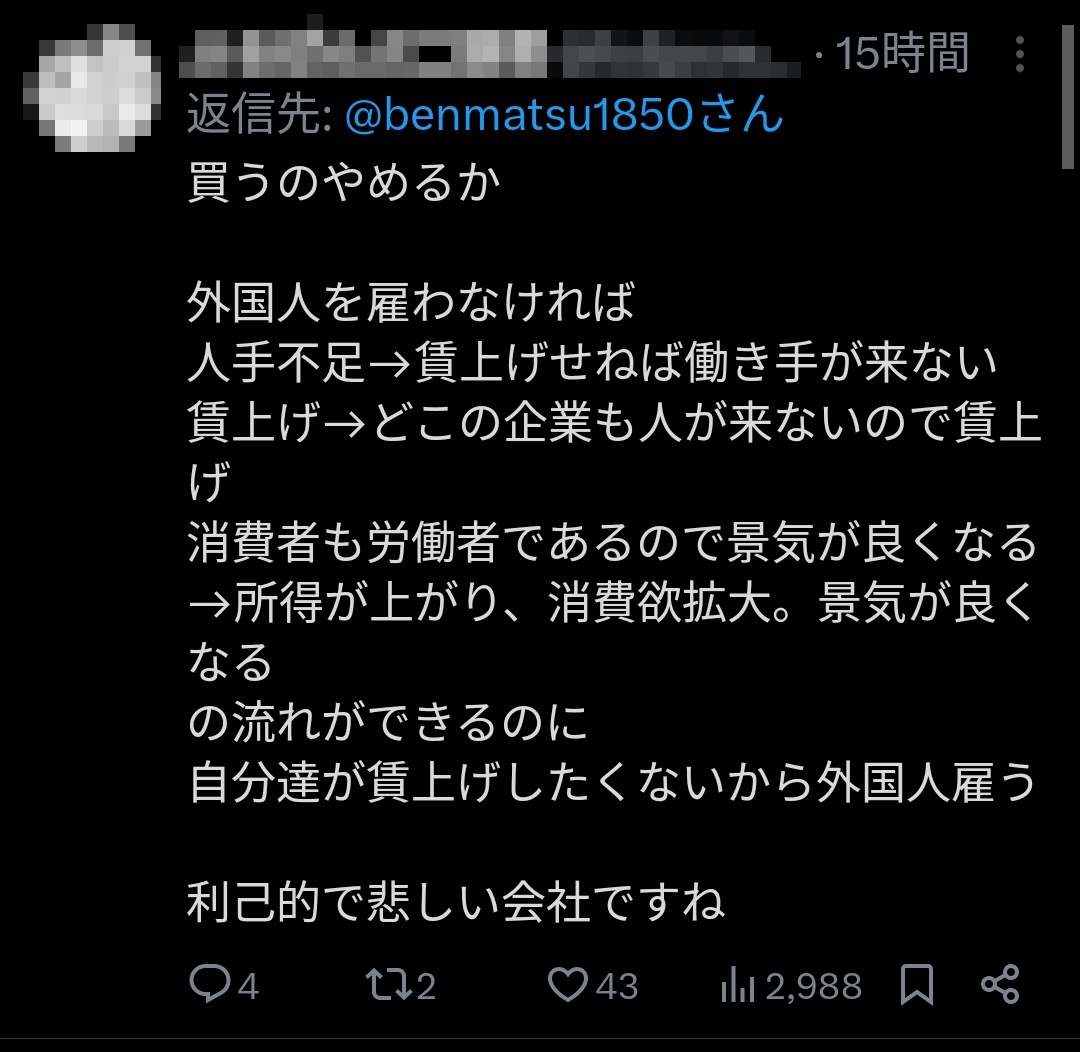 みんな人手不足だから外国人雇ってるって言ってるのに頑なに理解できないのはなんでなんやろな