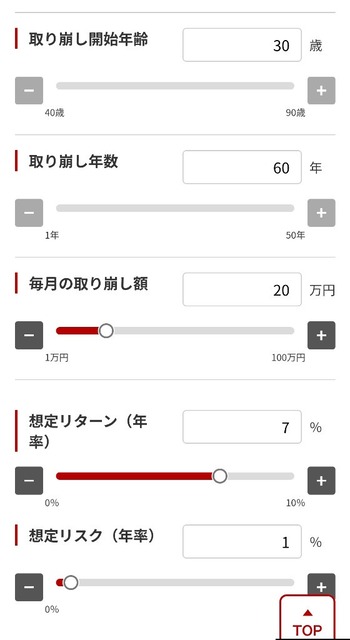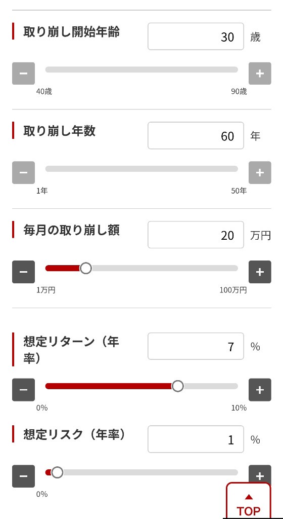 前提:年率7%、取り崩し20万を60年続ける場合必要な金額は3476万。5000万という余裕を持った額貯めることで、急な出費、株価の低迷などに対応。株価堅調なら20万以上の切り崩しも事実上可能にし、生活水準を担保。