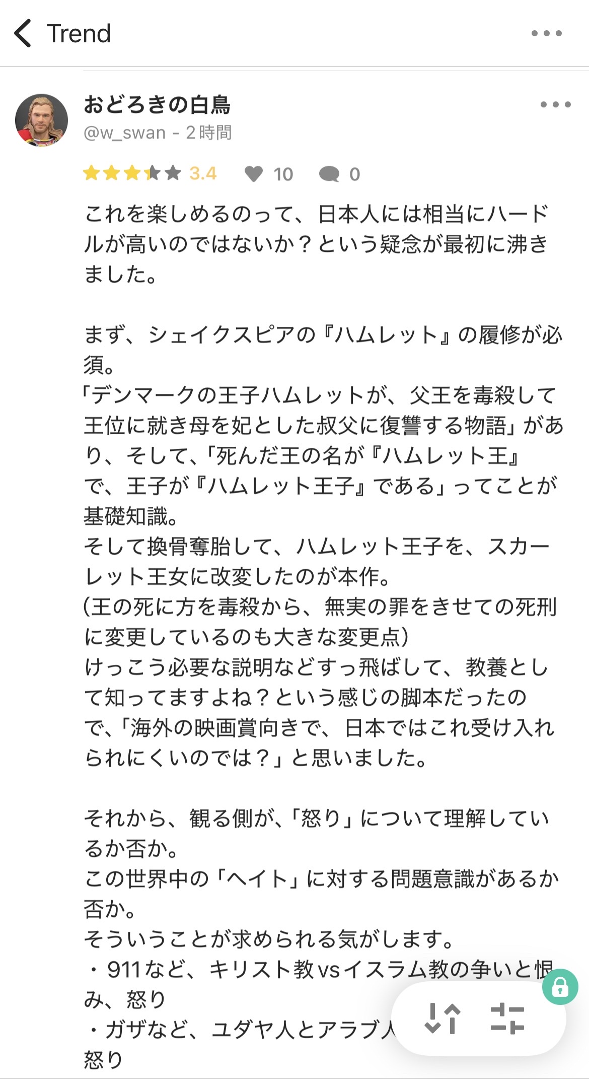 昨日はそのまんまハムレットでなんの捻りもないって嘆いてる人何人か見たよ