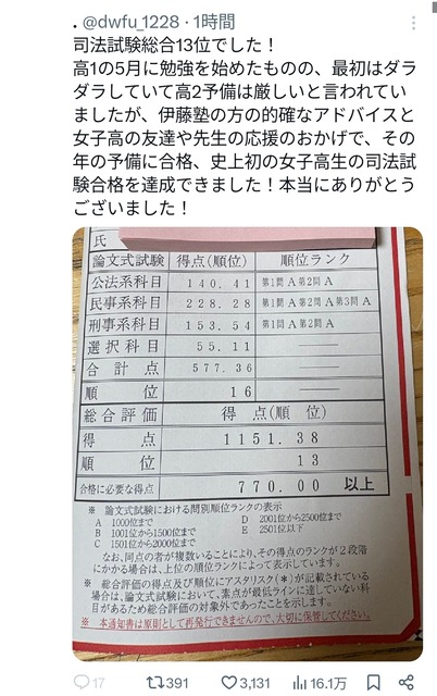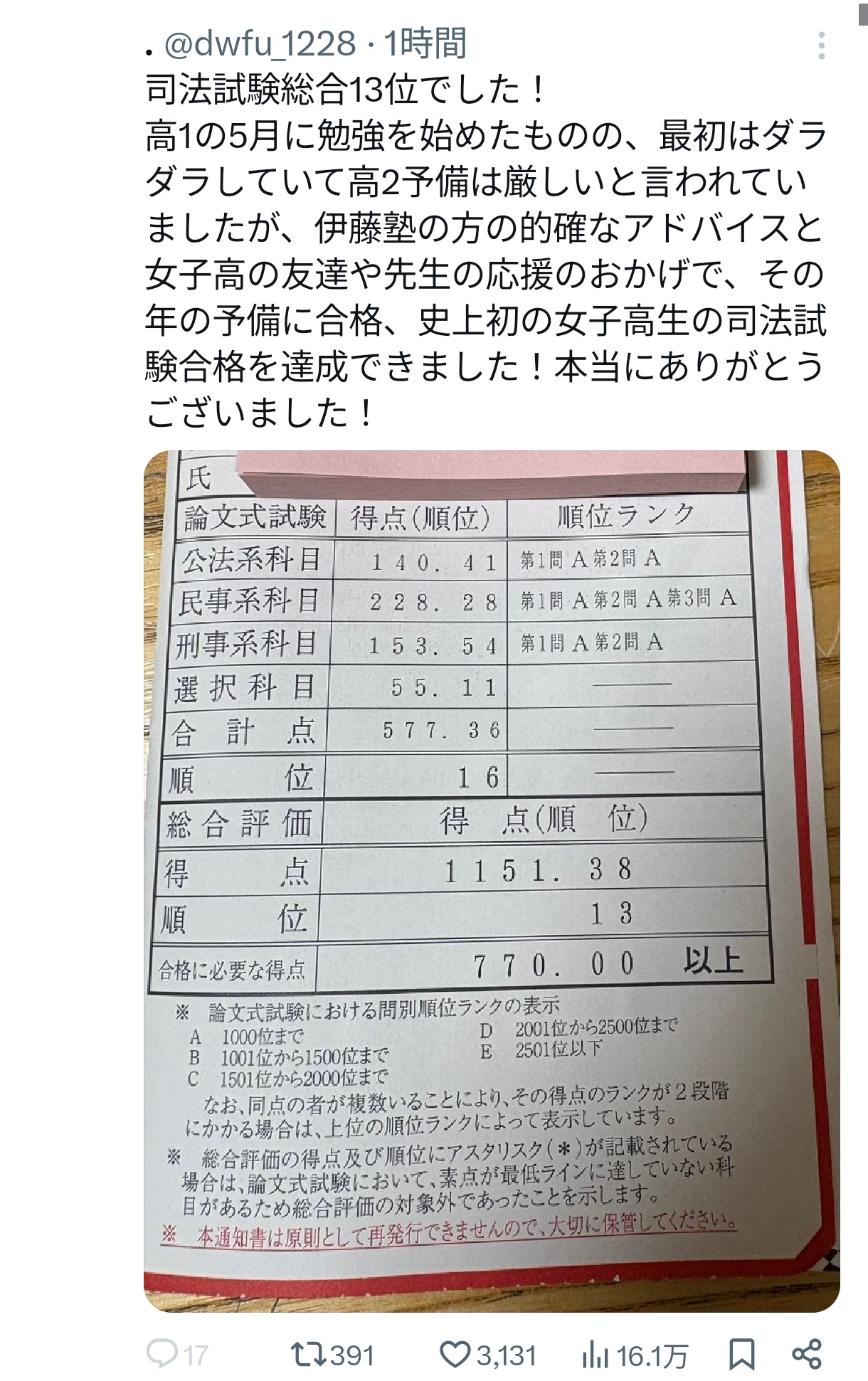 2025年の司法試験 合格者は1581人 最年少は18歳、最年長は69歳
