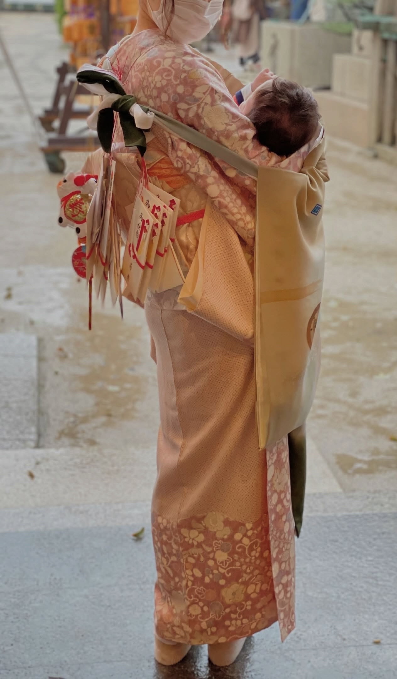 着物に赤さんの抱っこひも付けて苦しいやろなってのはわかる