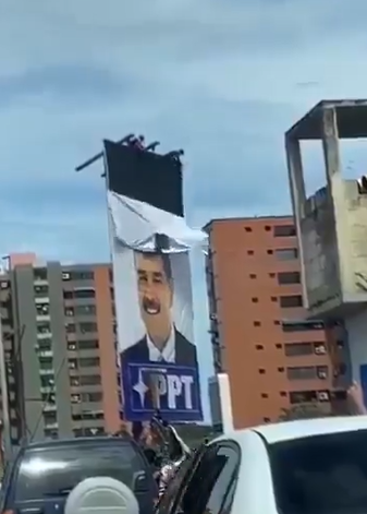 ベネズエラ国民大喜びで独裁者のポスターを破壊