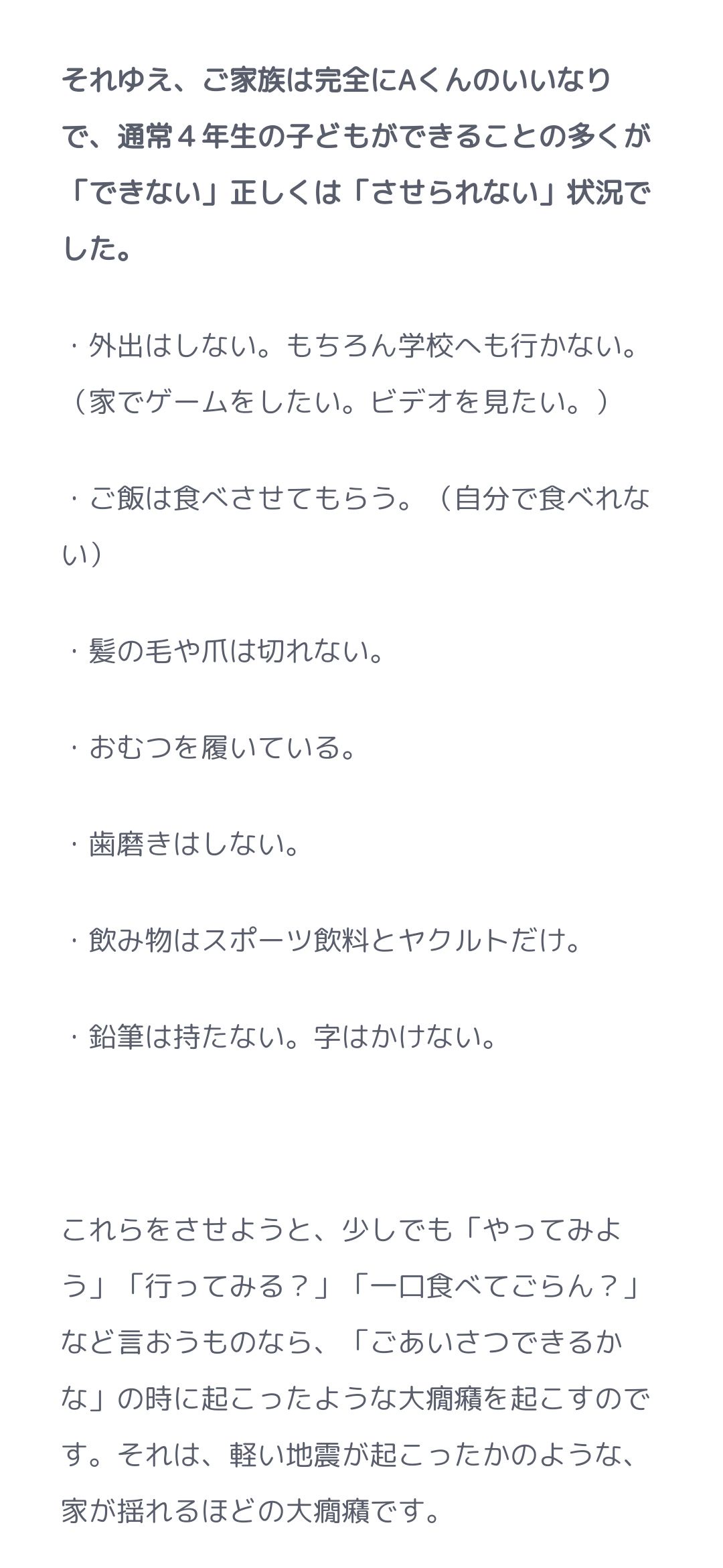 ・ご飯は食べさせてもらう。(自分で食べれない)