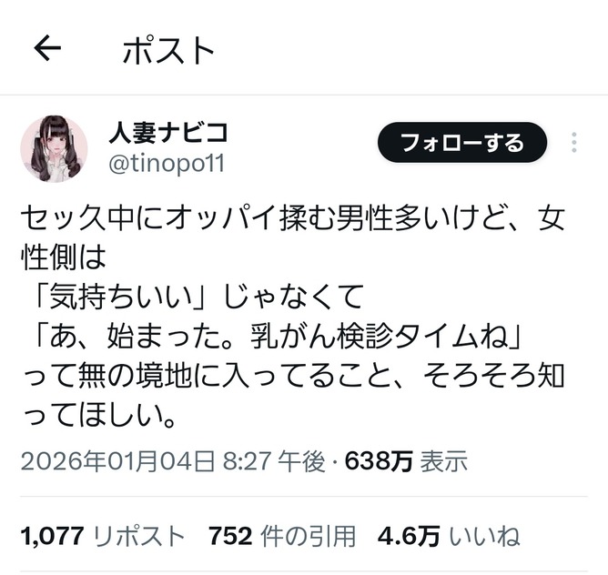 って無の境地に入ってること、そろそろ知ってほしい。— 人妻ナビコ (@tinopo11) January 4, 2026