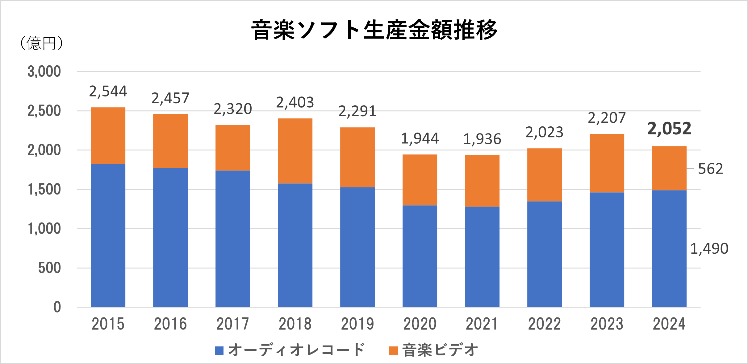 2024年年間音楽ソフト生産実績公表~前年比93%の2,052億円一般社団法人日本レコード協会のプレスリリース(2025年1月30日 13時00分)2024年年間音楽ソフト生産実績公表~前年比93%の2,052億円 - 5 :ななしさん :25/12/28(日) 18:10:17 ID:???