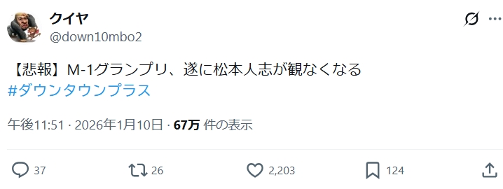 【悲報】M-1グランプリ、遂に松本人志が観なくなる#ダウンタウンプラス