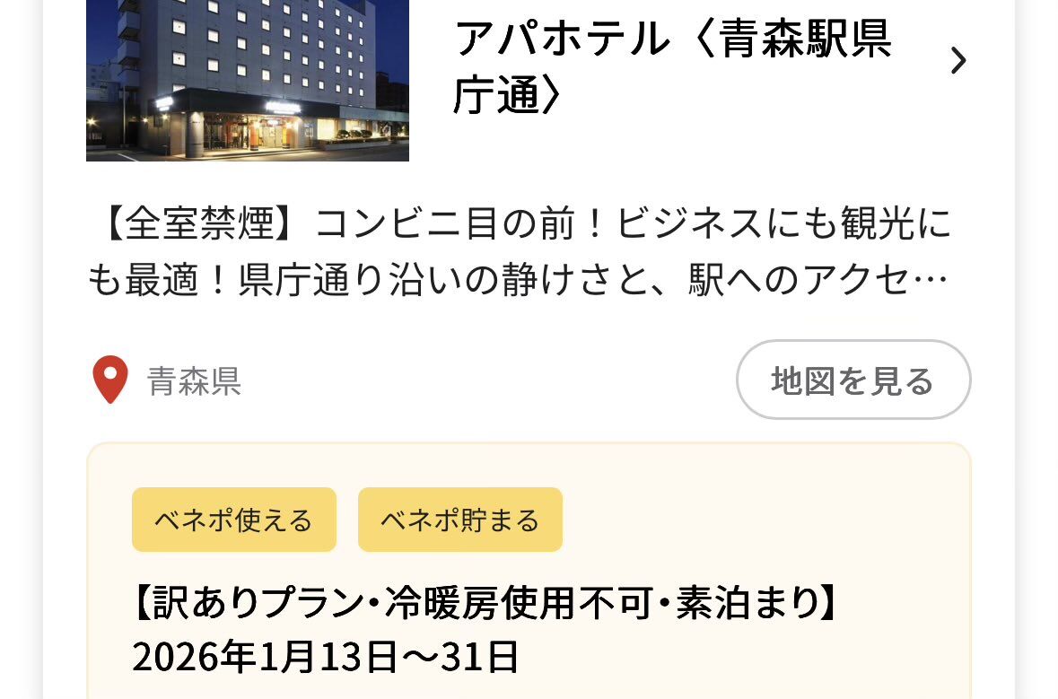 スポンサーリンク アパホテルの「訳ありプラン」、訳ありにも程がある ゴールデンタイムズ 2026.01.16 スポンサーリンク 1 :ななしさん :26/01/14(水) 23:17:16 ID:??? 訳あり過ぎんだろ 5 :ななしさん :26/01/14(水) 23:19:16 ID:??? 青森かぁ… 4 :ななしさん :26/01/14(水) 23:19:10 ID:??? 冬の青森で暖房使用不可か… 続きを読む Source: ゴールデンタイムズ