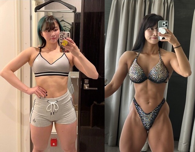 極太四頭筋ガール・ブラマジ田中 62kg→58kgのビフォーアフターを公開「筋肉量と体脂肪の比率が全然違うやつだ」