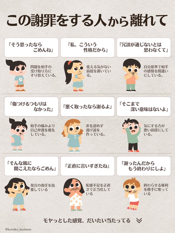 謝られたはずなのに、モヤモヤが残ることあるよね。 pic.twitter.com/ElbhokWUyV