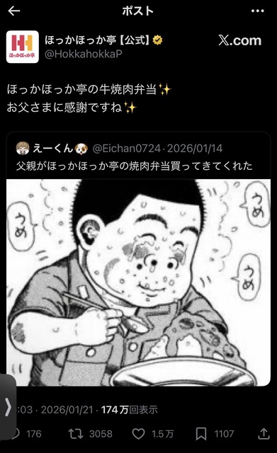 スポンサーリンク ほっかほっか亭、ゲロ漫画の画像を引用リポストしてしまい謝罪するwww キニ速 2026.01.24 スポンサーリンク 1:名無し :2026/01/22(木) 12:46:59.949ID:R3EWo4e5G ↓ 2:名無し :2026/01/22(木) 12:47:32.102ID:OnAUt7F.1 草 3:名無し :2026/01/22(木) 12:47:38.023ID:S1RrGFvXM おかわりもいいぞ 4:名無し :2026/01/22(木) 12:48:04.267ID:7hGV2kGx3 かわいそう 続きを読む Source: キニ速