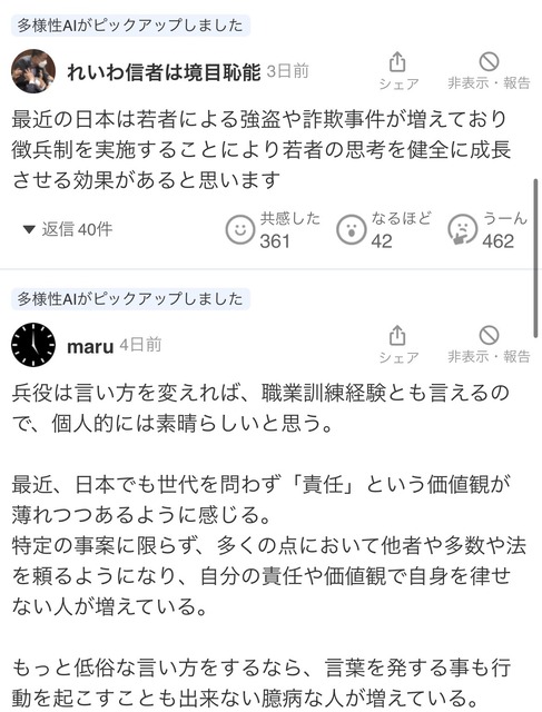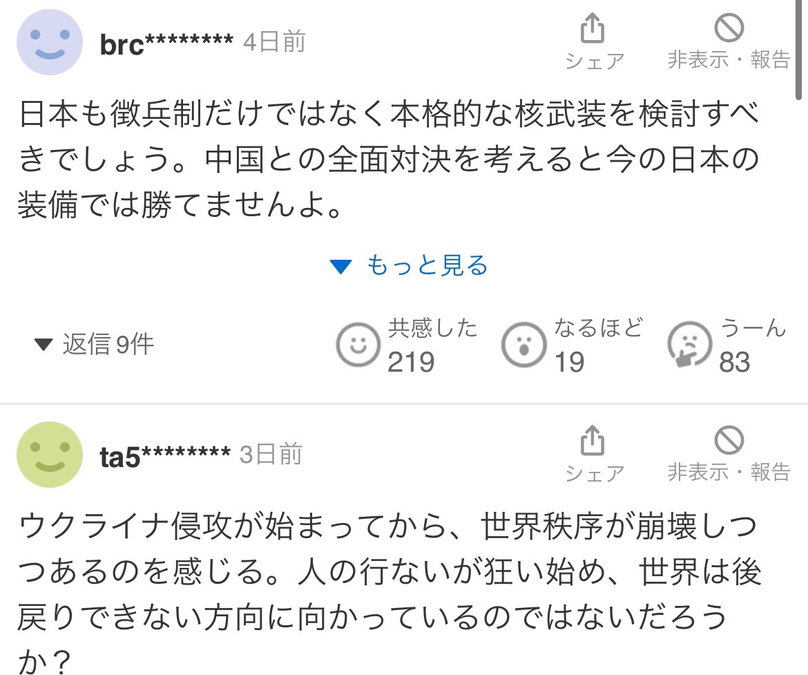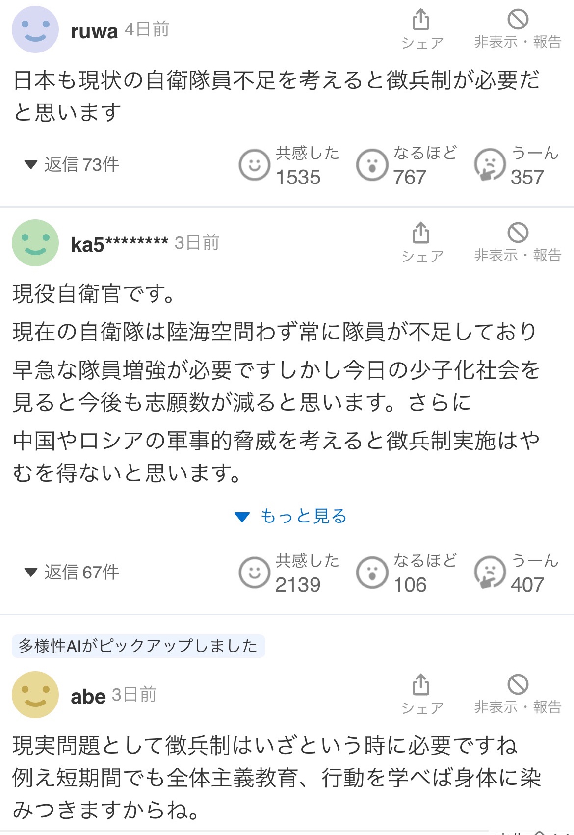 スポンサーリンク ヤフコメ民「ドイツが徴兵制を復活したので、日本も徴兵制を復活すべきです」→大賛同される… キニ速 2026.01.25 スポンサーリンク 1:名無し :2026/01/22(木) 15:39:38.420ID:TJTZynfi8 4:名無し :2026/01/22(木) 15:40:35.372ID:TJTZynfi8 コイツら普段はドイツとか欧米大好きなパヨクバカにしてるのにね… 続きを読む Source: キニ速