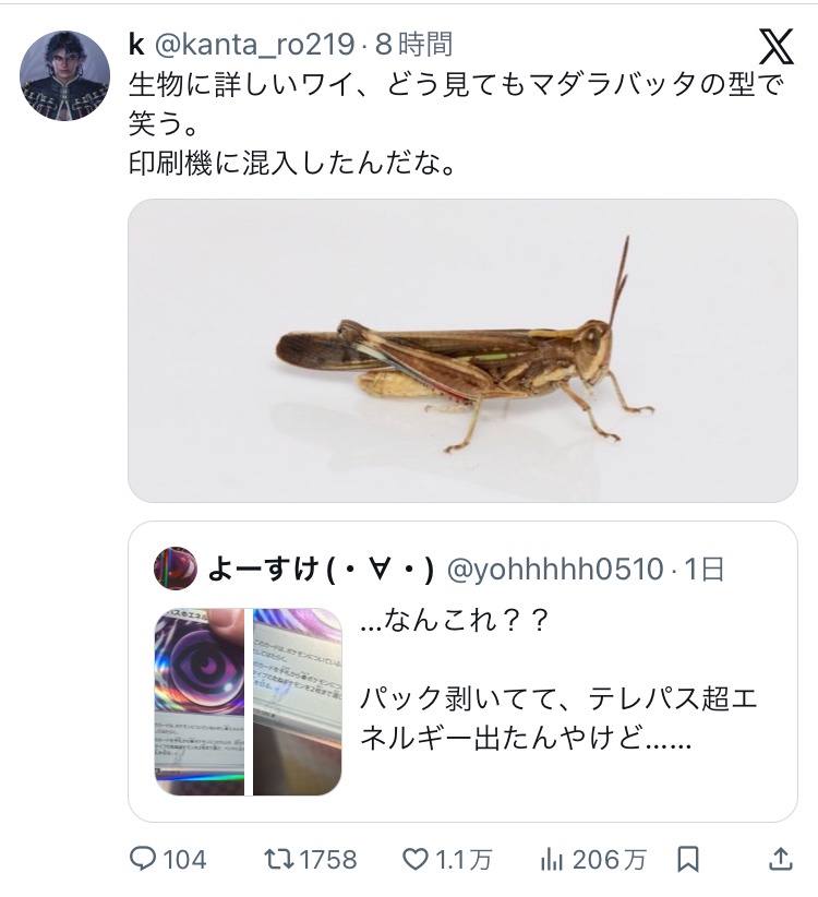【悲報】ポケモンカード、バッタによってめちゃくちゃにされるwwwwww