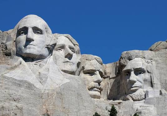 ラシュモア山の露頭に彫られた、アメリカ合衆国の成立、発展、開発を記念する建造物。