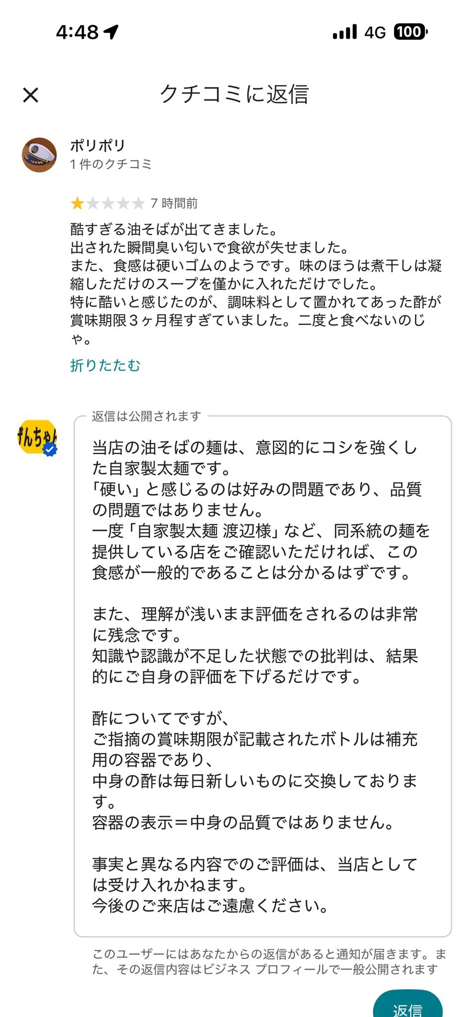 学割は、学生の方にも気軽に召し上がっていただくための価格を抑えたサービスメニューです。にもかかわらず、このような評価を受けたことは非常に残念であり、悲しく思います。