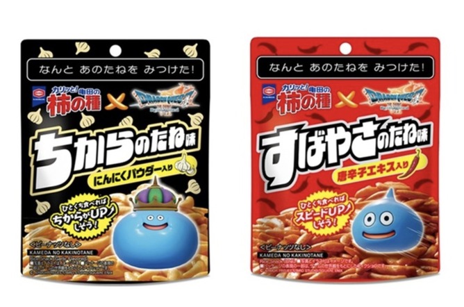 亀田製菓は2月5日発売する『ドラゴンクエストVII Reimagined』とのコラボレーション商品『37g 亀田の柿の種 ドラクエ ちからのたね味』、『37g 亀田の柿の種 ドラクエ すばやさのたね味』を2月3日から2月末までの期間限定で全国のローソンにて販売する。