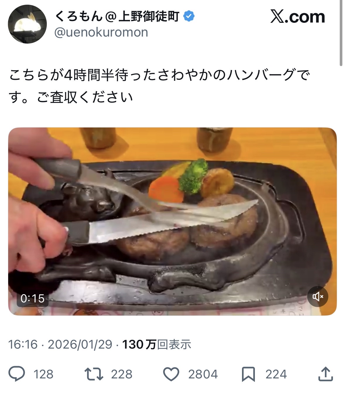 【動画】X「こちらが4時間半待った『さわやかのハンバーグ』で~すw」