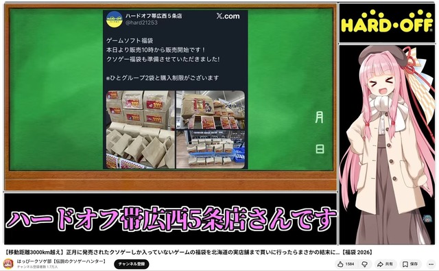 クソゲー動画投稿者の琴葉茜、帯広のハードオフが販売するクソゲー福袋を買いに行く