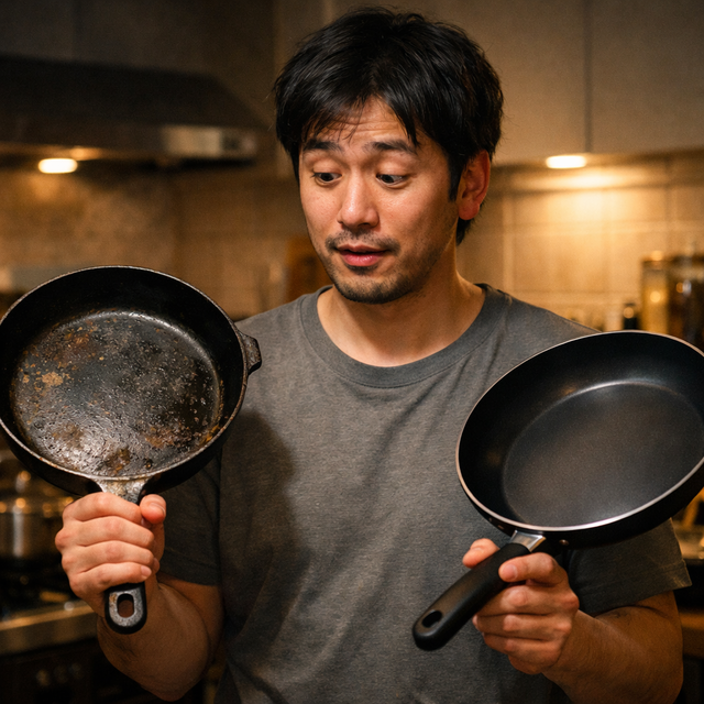 【悲報】鉄フライパン育て民ワイ、ついに気付く「テフロンでよくね?」