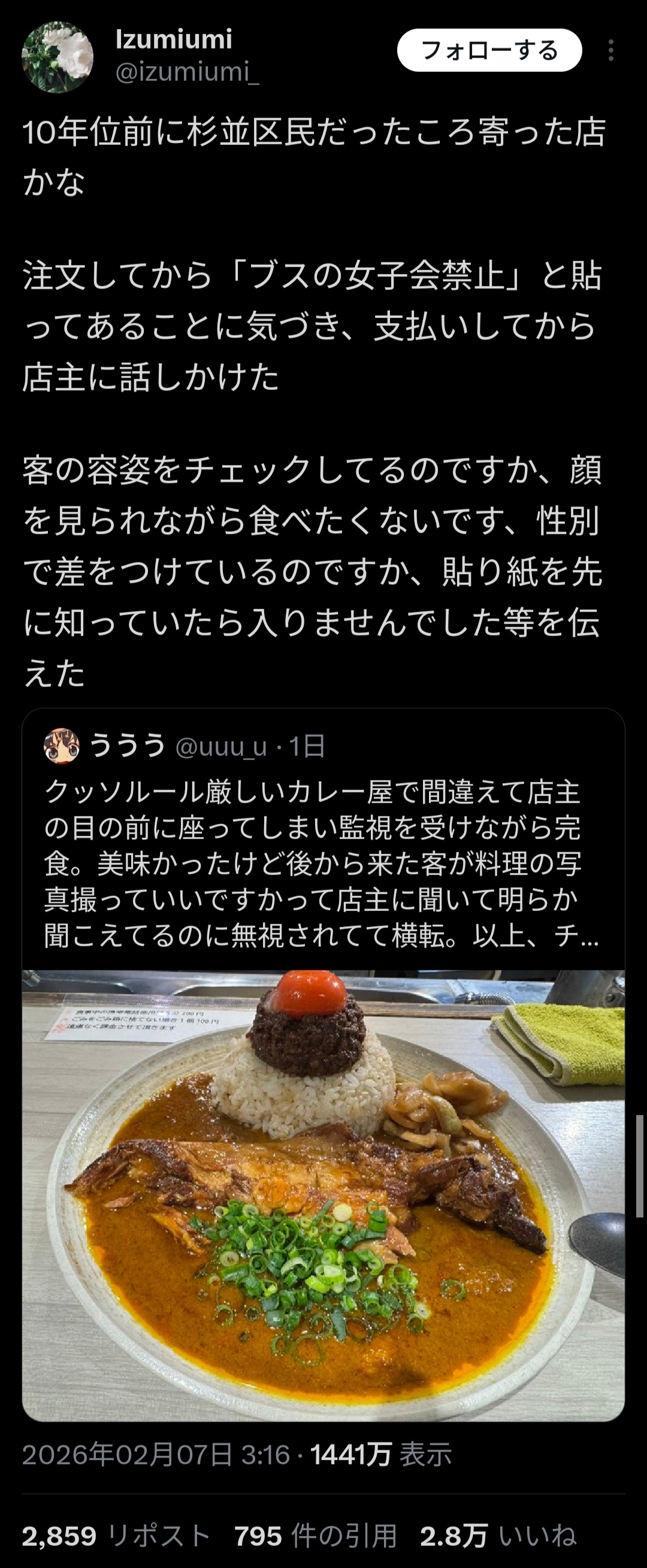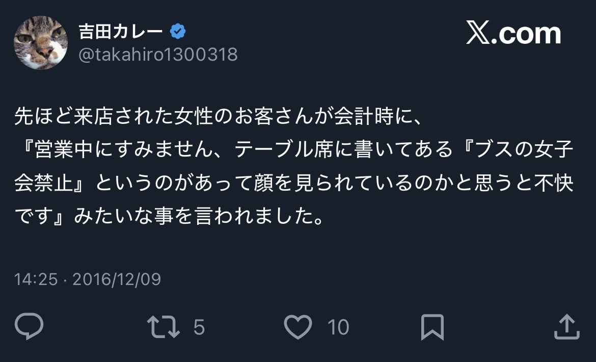 【画像】カレー屋「あ、ウチはブスの女子会ダメ(笑)(両人差し指でバッテン」女「不快です!」