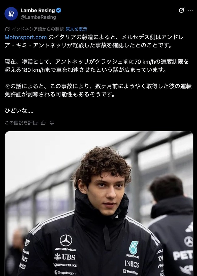キミ・アントネッリ(メルセデスF1ドライバー)→約180km/h