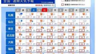 【速報】日本、明日から地獄。来週は38℃超えもwwwwwwwwwww