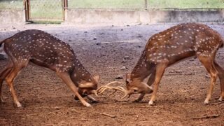 キニ速 【動画】シカ「ツノが絡まって動けないンゴ…」オッサン「助けに来たで!!」パァン
